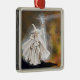 Feiticeiro branco poderoso pronto para a batalha sobre o campo de lava com seus funcionarios mágicos.