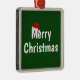 Um chapéu de Papai Noel engraçado e as palavras Feliz Natal em um fundo verde. Você pode clicar em personalizar e editar a palavra Natal ao seu gosto.