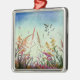 Uma bela cena de flores silvestres vibrantes e coloridas no conjunto de ventos em frente a um céu azul e verde com estrelas.