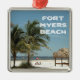 Fort Myers Beach, Flórida, foto da cena da praia com palmeiras e uma cabana tiki representa esta bela cidade tropical. O nome "Fort Myers Beach" está incluído numa fonte de praia divertida.