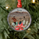 Personalize o texto e adicione a sua foto - Verde Festivo e Ornamento Metálico de Férias de Natal Vermelho