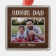 Encantador ornamento personalizado para um padrasto especial mostra uma foto favorita com "Pai de Bônus" acima em letras rústicas. Personalize com o ano em que se tornou padrasto por baixo, ou adicione uma mensagem ou nome personalizado.