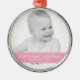 Ornamento De Metal Foto personalizada simples, rosa e branco