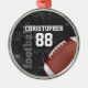Um moderno design de ferro da rede de futebol americano, com uma bola de futebol num fundo de tipografia de futebol com terminologia de futebol ao fundo. O design apresenta texto personalizável para o nome e o número do jogador de futebol ou do ventilador de grade de ferro. Este design foi feito em parte com gráficos licenciados pela Fábrica de Gráficos.