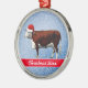 Uma vaca de Hereford está vestindo um chapéu de Papai Noel em um fundo de neve. Esta design é perfeita para o criador de Hereford.