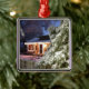 High Sierra Holiday. Foto original de uma bela casa coberta de neve, cercada por uma cerca branca de piquete e um pinheiro solitário. Localizado no pinheiro solitário, CA.