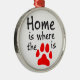 Um jogo de palavras com a citação "Casa é onde está o coração", este ornamento redondo tem as palavras "Casa é onde está a [pintura impressa]", com a pintura impressa em vermelho, representando o "coração". O presente perfeito para amantes de estimação.