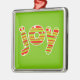 Ornamento De Metal JOY at Christmas, Red & Green Stripes
