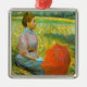 Este design apresenta uma pintura do Impressionista Italiano Federico Zandomeneghi (1841-1917). Mostra uma jovem elegante descansando em um belo campo verde de grama. Ela está vestindo uma blusa rosa e uma longa saia verde; em suas mãos ela está vestindo luvas de seda brancas e segurando um parasol vermelho no colo. Seu cabelo está amarrado de forma elegante em um pão, e ela está olhando de forma contundente para longe. É uma cena calma e inquieta, mostrando a beleza de uma era perdida.
