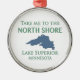 Leve-me à costa norte do lago Superior! Com uma ilustração do maior dos lagos Excelentes, o lago Superior. De Duluth a Grand Marais, a margem norte é a favorita das férias enquanto os viajantes dirigem para cima e para baixo na rodovia 61, parando no farol de Split Rock, o compro de tortas, e, claro, nas praias rochosas ao longo do lago.