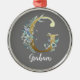 Monograma/G inicial Dourado com flores a aquarela e folhas sobre fundo preto. Personalizar o ornamento com seu próprio texto/ nome de família na fonte moderna do script