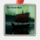 Uma imagem ligeiramente estilizada de um navio de longa distância Viking navegando à noite sob as Luzes do Norte ali um casal de icebergs; a maioria da tripulação está dormindo. Adicione seu próprio texto. Esta é uma versão desbotada ou antiga da imagem original mais clara que também está disponível.