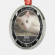 Insira a foto, o nome e o ano de nascimento/morte do seu gato neste ornamento personalizado de fotos para memorializar o seu amado animal de estimação. Perfeito para ficar na árvore de Natal, ou sair o ano todo.