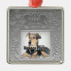 Carregue uma foto e personalize este ornamento memorial personalizado de prata para criar um bem-estar que eles vão amar. Se você precisar de ajuda para editar ou redimensionar sua foto, ou se quiser fazer alterações no design, use o botão de contato. Possui uma etiqueta de cão, asas de anjo, corações e patas.