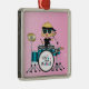 Ornamento De Metal Menina loura do baterista com as estrelas no rosa