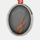 Este adorável ornamento tem um cello miniatura e um dentro arco. Os instrumentos foram desenhados com efeito trompe-l'oeil para fazer com que parecessem tridimensionais. O fundo do pode ser personalizado com um nome ou uma palavra inspiradora.