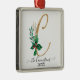 "Monograma C Holly Christmas Glitter Family Metal Ornament. Letra C Monograma Inicial. Folhas de cor aquosa elegantes e frutos vermelhos de inverno, juntamente com folhagem das folhas e ouro verde. O alfabeto completo está disponível na coleção mostrada abaixo. Arte de Audrey Jeanne Roberts, artista internacionalmente licenciada, copyright.