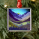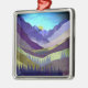 Uma paisagem abstrato com texturas únicas mostrando uma paisagem de montanha roxa e lavanda com um céu azul atordoante e bando de aves em tons de roxo, lavanda, bege, amarelo e rosa.