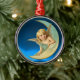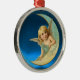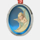 Bronzeado brilhante e loiro, anjo romântico de olhos azuis pendurado na Lua com uma brilhante pedra azul da safira em 3D