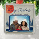Família de Luas de inverno russa Foto do Ornamento de Metal de Natal. Floresta de neve de inverno com lua e flocos de neve. Foto personalizada em um quadro redondo. Adicione sua foto, nome e ano.