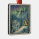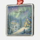 Este Ornamento apresenta uma floresta de inverno nevada à noite com estrelas e auroras no céu. As casas estão brilhantemente iluminadas. Belo decoro para sua Árvore de Natal e também uma bonito ideia de presente! Custom Text.