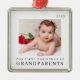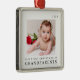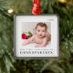 Nosso Primeiro Natal como Avós Moderno Ornamento Metálico. Adicione sua foto favorita de bebê e ano. Fácil de personalizar. Feliz Feriados!