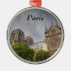 Esta é a fachada de Notre Dame de Paris, uma catedral gótica em Paris, França. A bela arquitetura desta igreja medieval e o exterior das janelas de vidro manchado estão em exposição debaixo de um céu tempestuoso cheio de nuvens. Notre Dame também é conhecida como Nossa Senhora de Paris.