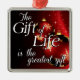 Aqui está um ornamento elegante para destacar sua árvore de Natal e celebrar o presente da vida. O presente da vida é realmente o maior presente. Lindos ornamentos vermelhos e dourados iluminam o fundo em outro ornamento disponível apenas da arte KNS e da Loja de Natal KNS!