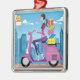 Opinião lateral a mulher com os presentes no patinete. Copyright: Eastnine Inc.