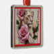 Uma tatuagem realista de uma leoa segurando uma rosa com um longo tronco, misturando força e beleza. Sutil sotaque dourado destaca o rosa, colocado sobre um fundo texturizado suave para um olhar refinado e poderoso. "A Imagem Original foi gerada pelo Meta AI. A IA gerou trabalho de arte. Licenciado sob CC BY-SA 4.0.