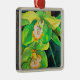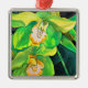 A partir de uma pintura original em aquarela de Sacha Grossel de flores de orquídea verdes e amarelas em estilo botânico pintado. Esta obra de arte original do estilo pop floral especial é vibrante e colorida. Verde limão e amarelo-limão num fundo verde-escuro texturizado.