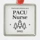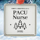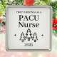 Primeiro Natal como ornamento cardíaco de enfermeira PACU para um novo emprego na enfermagem na unidade de cuidados com anestesia postada. Um ornamento elegante de férias no estilo luxo, em branco, com letras negras, com árvores e estrelas de Natal mínimas.