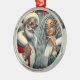 Papais noeis e companheiro estão prontos para comemorar, ambos vestindo roupas temáticas de Natal na moda. Eles estão em um pano de fundo de luzes de férias e decorações, prontos para um encontro festivo.