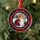 Este ornamento temático rústico memorial de animais de estimação mostra sua foto de animais de estimação no centro, bordado por uma xadrez de ouro falso e de búfalos preto e preto e preto com as palavras "Para Sempre em Nossos Corações" e o nome do seu cachorro ou gato de seu animal de estimação e anos de destaque por corações. Desenhada pela artista Susan Coffey.