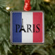 Ilustração de design de texto de Paris com decoração em Torre Eiffel sobre fundo de bandeira francesa de moagem