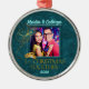 Bonitas matizes de chá e turquesa misturam-se com sotaques de ouro neste ornamento fotográfico com texto personalizado para os recém-casados no primeiro Natal juntos.