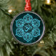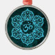 Uma luz - o OM azul projeta senta-se dentro de uma flor de lótus estilizado. Uma sombra cai no fundo textured de pedra que faz a flor parece flutuar apenas acima da superfície do teste padrão. Seis folhas elegantes alcançam para fora do centro do design para criar um teste padrão simétrico bonito. Este design à moda da ioga é uma representação impressionante deste símbolo espiritual.