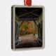 Olhando as lindas cores de queda da dentro da ponte coberta pela estrada Everett no Parque Nacional do Vale de Cuyahoga, em Ohio.