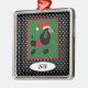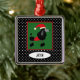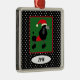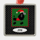 O poodle crescido em rico preto com boné Papai noel, fundo bolinhas preto e branco e data personalizável são todos combinados nesse adorável ornamento de keepape