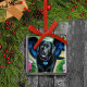 Para o amoroso animal de estimação, que merecia suas asas e halo, um adorável labrador negro com sua forma cardíaca, etiqueta azul no colarinho e expressão sincera de amor e alegria. Sua lealdade e companheira fiel ainda dão essa bondade para sempre. A cabeleira brilhante, cutena em um jardim, asas de anjo estendidas, e halo brilhante flutuando acima. Personalize com o nome do seu animal de estimação na etiqueta azul.