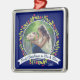 Este ornamento quadrado da árvore de Natal oferece um design bonito para um casal do newlywed. Um quadro redondo da foto é acentuado com uma ilustração de uma grinalda do feriado. Uma bandeira do branco caracteriza o texto "primeiro Natal do roteiro um Sr. & a Sra." isto será uma lembrança maravilhosa para recentemente o casal.