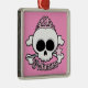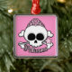 Crânio de princesa bonita e ossos cruzados com texto de tiara, varinha e PRINCESS.