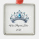 This silver-colored premium metal ornament is shown with a sparkling crystal tiara with black text on a white background.