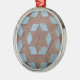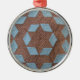 Quilt bloqueia o padrão castelo castanho e azul. O "castelo" central é uma forma de estrela castanha, rodeada pela "parede lateral 6", com as "torres de relógio" a estender-se do meio das paredes.