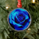 A rosa digitalmente alterada é agora um rico Azul Sapphire de cor com algumas gotas de orvalho e chuva vermelha a cair.