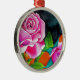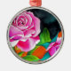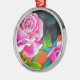 Ornamento De Metal Rosa Rosa com arte de aquarela laranja