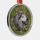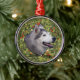 O retrato gordo do Husky Siberiano foi colocado contra uma coroa verde-escura de Natal, borrifada com realces de morango vermelho.