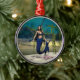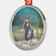 Renderização digital em 3D de uma sereia fofa sobre fundo oceânico de fantasia azul