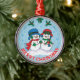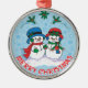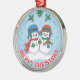 Personalize este Enfeites de natal único de "um tipo"! Ele Apresenta o Sr. & Sra. Frosty O Homem das Neves Pegando um Balão de Natal Mágico através de uma "Terra das Neves do Inverno"! Pintura de arte original do artista Kerry Miller.