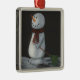 Este Ornamento Snowman apresenta um impressão de um boneco de neve desenhado à mão com lápis coloridos em papel preto.